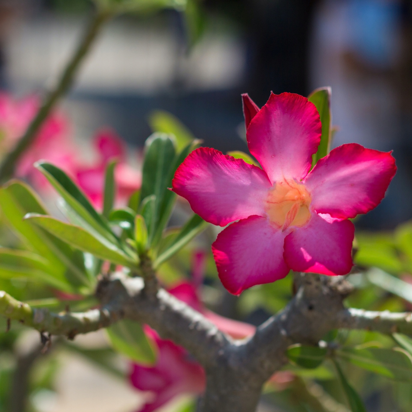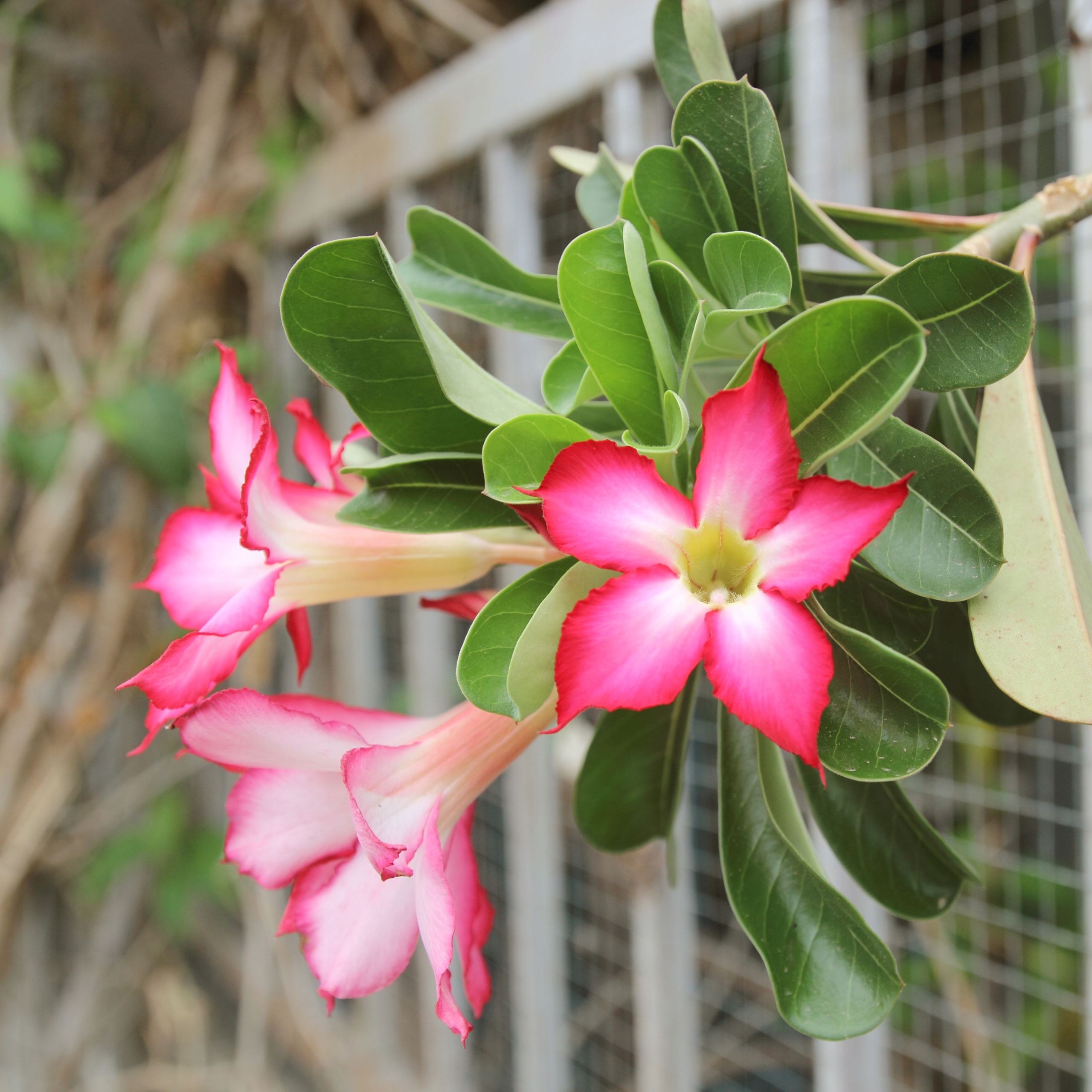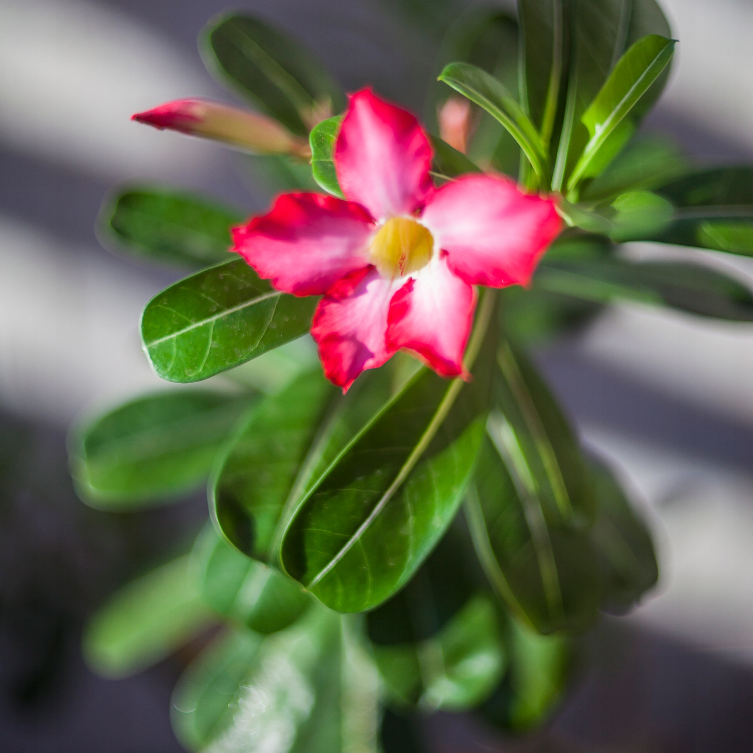 Adenium obesum – znane również jako pustynna róża, to atrakcyjna roślina sukulentowa, która pochodzi z obszarów Afryki, głównie z Sahelu oraz Półwyspu Arabskiego. Charakteryzuje się pięknymi, lejkowatymi kwiatami w odcieniach różu, czerwieni i bieli oraz grubym, bulwiastym pniem, który gromadzi wodę, co czyni ją doskonałą rośliną do uprawy w warunkach suchych.