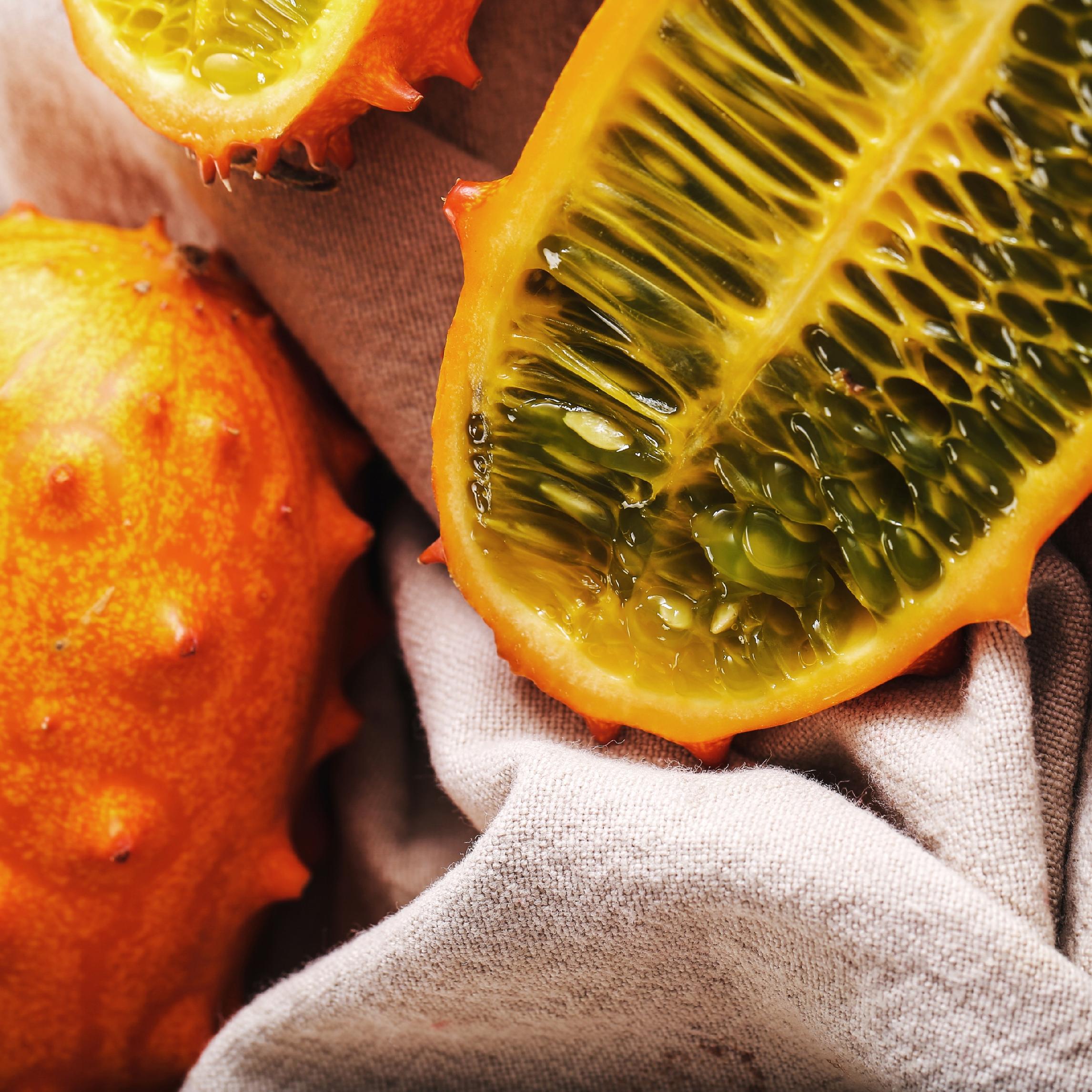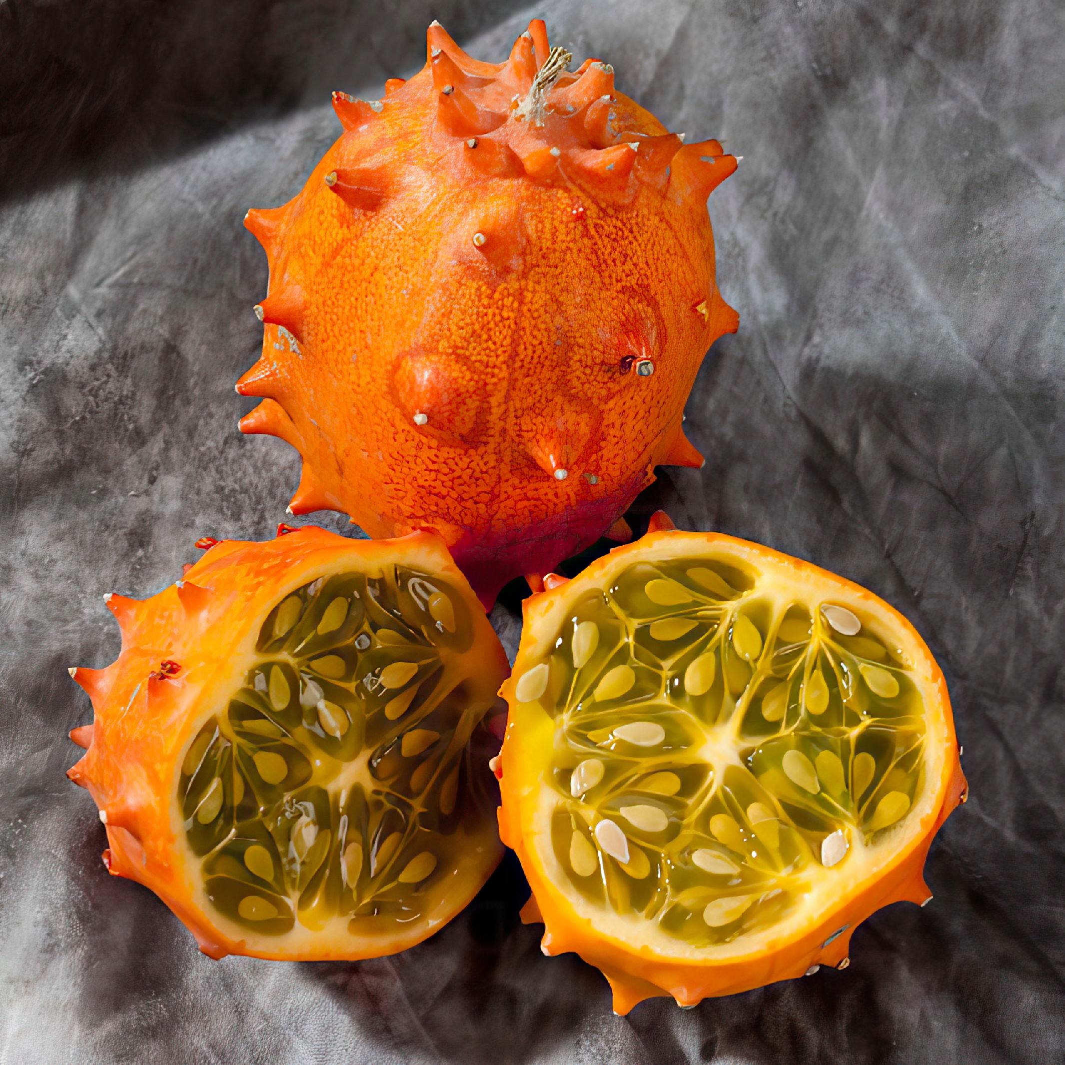 Znane również jako ogórek afrykański to egzotyczna roślina pochodząca z Afryki, szczególnie z regionów południowej i środkowej. Charakteryzuje się wyjątkowym wyglądem – ma owalny kształt, pokrytą kolcami skórkę w intensywnym pomarańczowym lub żółtym kolorze oraz soczysty, zielony miąższ wypełniony nasionami. Jego orzeźwiający smak przypominający mieszankę ogórka, kiwi i bananów doskonale sprawdza się w sałatkach, smoothie oraz jako dekoracja potraw.